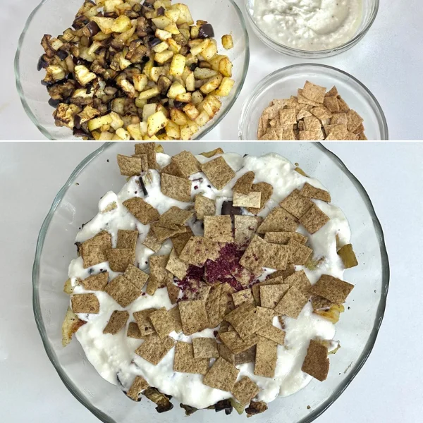 The secret to this salad’s success is the perfect harmony of contrasting temperatures and textures. The warmth of the roasted vegetables creates a beautiful balance with the cool, tangy yogurt dressing. Unlike traditional salads, which can often be light and unsatisfying, this version is hearty and “meaty” thanks to the roasted eggplant. The air-fried bread adds a satisfying crunch to every bite. This salad is a guilt-free way to enjoy a rich, indulgent flavor profile, as it uses only wholesome, clean ingredients.